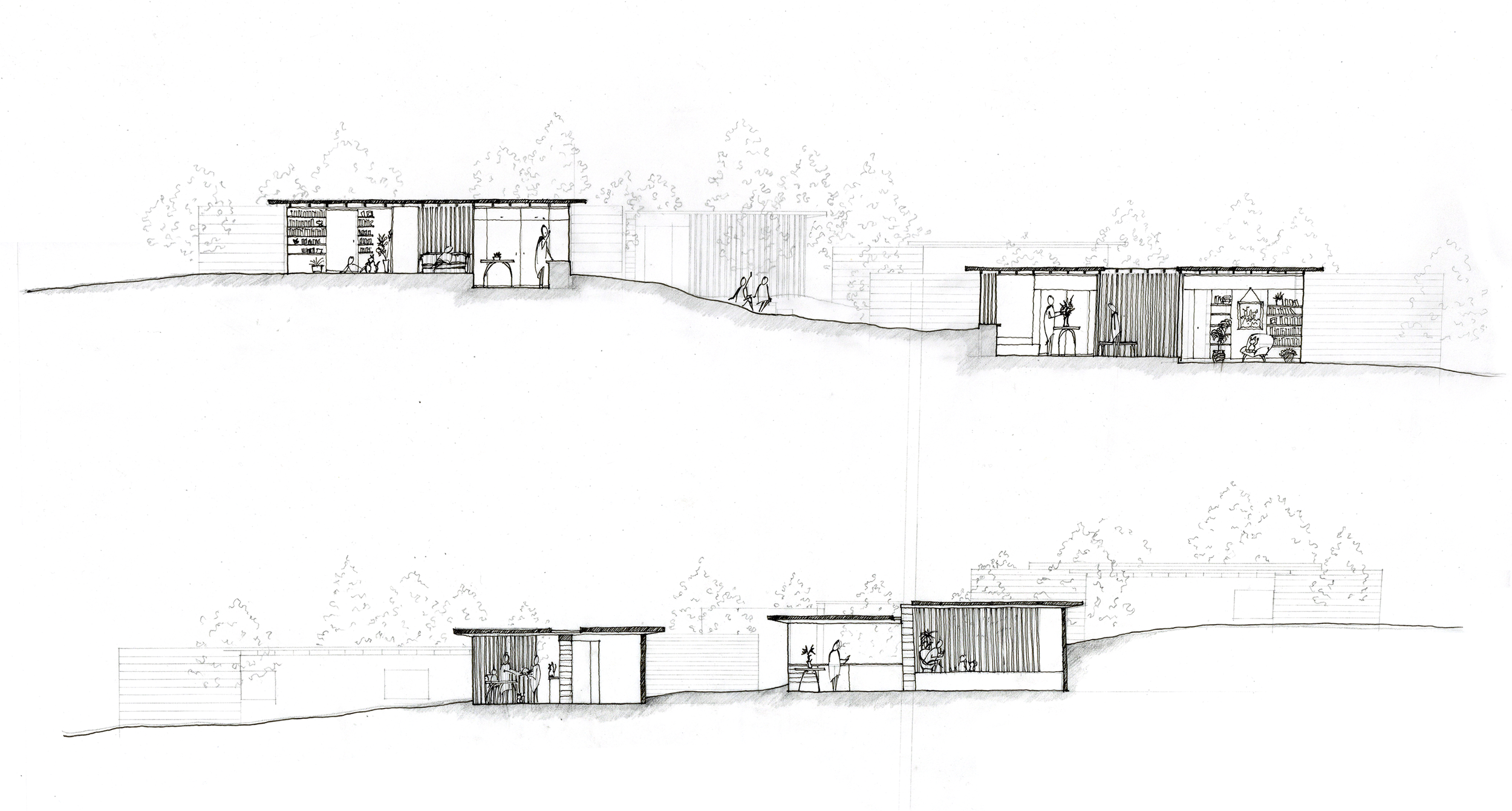 By motivating the placement of units and clusters by the walls ability to interact with topography, each dwelling has a unique sense of privacy.